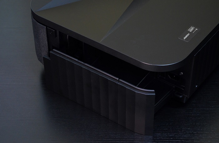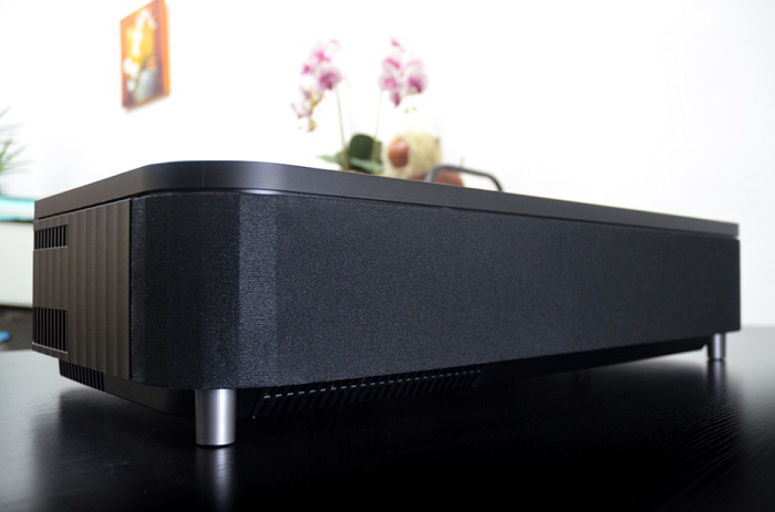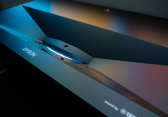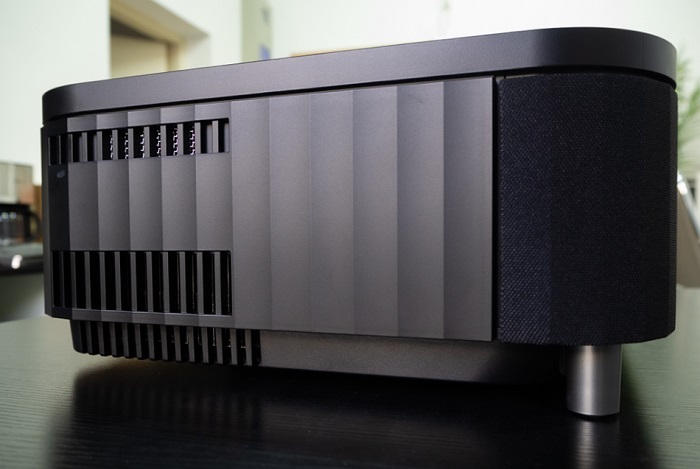 愛普生EH-LS800配備雅馬哈深度定制音響,機身正面覆蓋精致密紋織物音響網(wǎng)罩