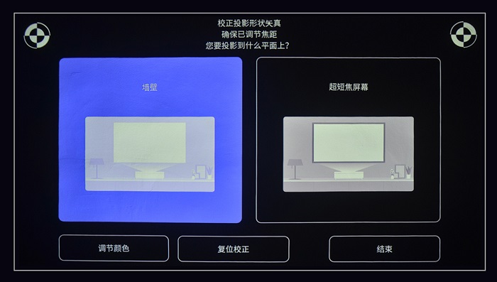 一般來說,激光電視需要專業(yè)的畫面校正,才能獲得平整準確的效果,用戶需要繁瑣地反復(fù)調(diào)試畫面平整與四角清晰。愛普生EH-LS800大大簡化了調(diào)整過程,用戶可以通過APP輔助調(diào)整、多點校正等方式輕松、高效率的獲得完美畫面。用戶只需要跟隨屏幕上的引導(dǎo)提示,一步步操作就能選擇模式,進行基礎(chǔ)設(shè)置,完成畫面調(diào)校。