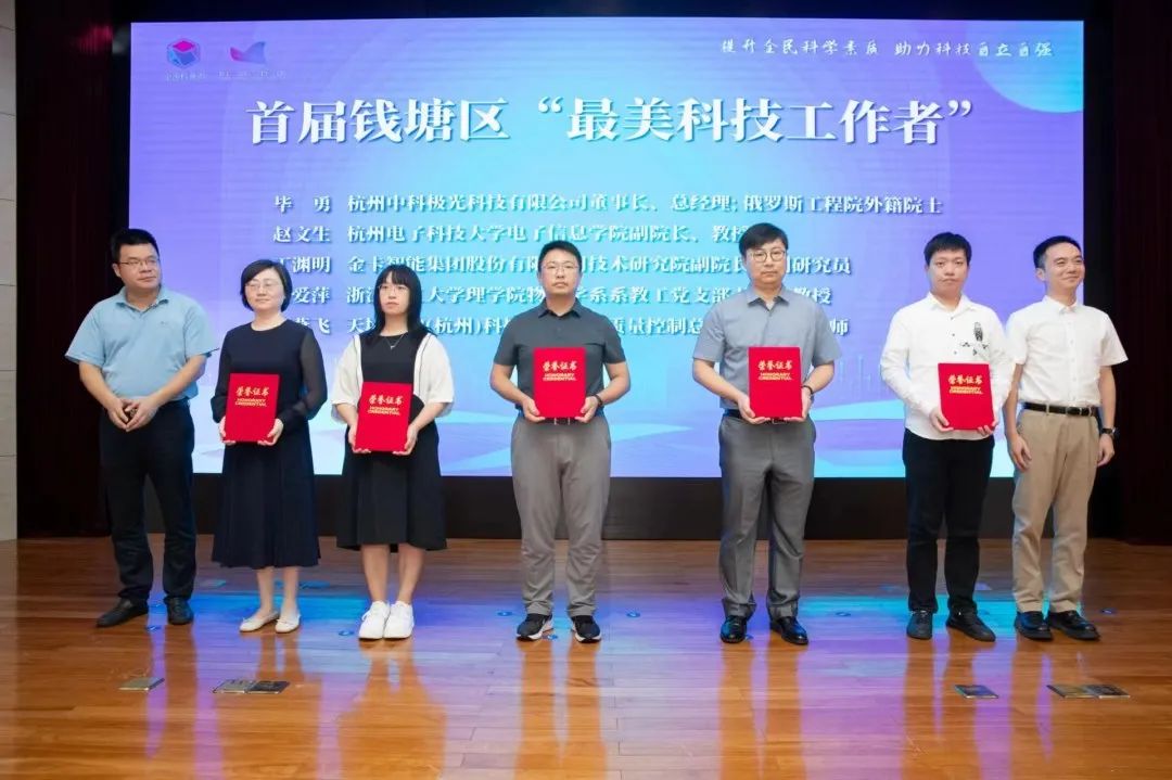 活動(dòng)現(xiàn)場(chǎng)為首批10名錢塘區(qū)優(yōu)秀科普員、首屆錢塘區(qū)“最美科技工作者”“未來(lái)科技之星”頒發(fā)獲獎(jiǎng)證書。多個(gè)亮眼獲獎(jiǎng),是對(duì)錢塘科普工作的肯定。中科極光董事長(zhǎng)畢勇博士獲“最美科技工作者”稱號(hào)。
