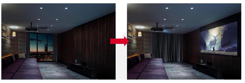 此外,其還支持垂直、水平梯形校正及四角校正功能,投影機旋轉90°的肖像模式和360°投影,地板、墻壁、天花板自由投影,均能為用戶提供極佳的觀看體驗;與此同時,支持曲面投影,投影機屏幕可適應曲面、弧形等異形表面,提升居家使用空間的使用極限,并獲得更加身臨其境的電影或演唱會體驗。