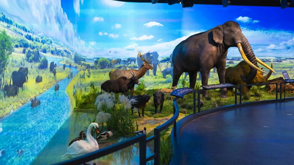 穿過真實還原的遺址發(fā)掘現(xiàn)場,領(lǐng)略遠(yuǎn)古時期獨(dú)特的地質(zhì)地貌,緩步前行便豁然可見薩拉烏蘇秀麗的動植物生態(tài)場景。Vivitek(麗訊)一系列高亮度工程投影機(jī)通過拼接融合技術(shù),為該館繪制了一幅連綿的壯麗奇景。雄鷹展翅高飛,大象、野馬成群遷徙而過,廣袤無垠的薩拉烏蘇仿佛回到了遠(yuǎn)古時期風(fēng)光綺麗的繁榮之景。