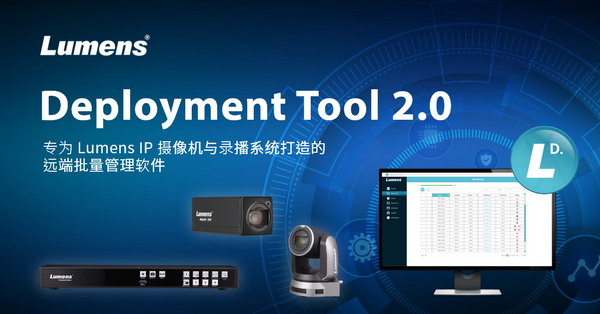 透過(guò) Lumens Deployment Tool 2.0 軟件,支持多款 Lumens 攝像機(jī)及錄播系統(tǒng),用戶可直覺(jué)、快速管理所有的設(shè)備,進(jìn)行切換影像畫面、編碼傳輸及錄像儲(chǔ)存。您還可遠(yuǎn)端將所有的設(shè)備設(shè)定休眠模式,有效節(jié)省電力,同時(shí)大幅提升您的工作效率。