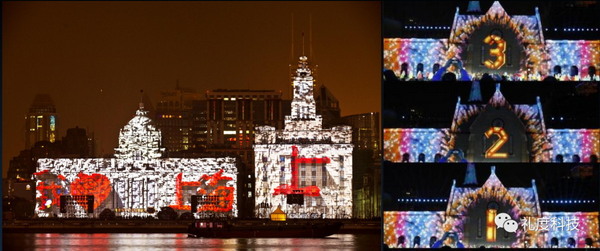 上海外灘4D跨年燈光秀在上海外灘舉行, 投影面積覆蓋超過9000平方米、 橫跨上海浦東發(fā)展銀行和海關(guān)大樓長達70米的建筑。整個表演分為蒸汽時代、 工業(yè)時代、 信息時代、 未來時代等幾個章節(jié)。被美聯(lián)社、 路透社、 CNN等覆蓋全球超過 30 億觀眾的國際知名媒體轉(zhuǎn)播報道。