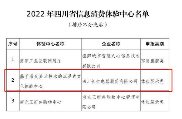 2023年1月,長虹激光體驗展示廳獲選四川省信息消費體驗中心,常有政企單位、高校、合作伙伴等前來參觀,在四面沉浸、球幕裸眼3D、高清光影霧幕、4K激光融合方案等場景中感受激光顯示在各個領域的魅力。