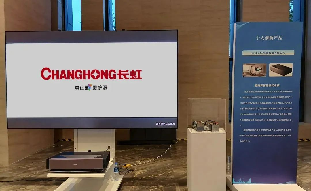2023年5月,長虹激光電視榮獲“綿陽市十大創(chuàng)新產品”,旗艦產品全色激光電視D300亮相2023年綿陽市科技創(chuàng)新大會。