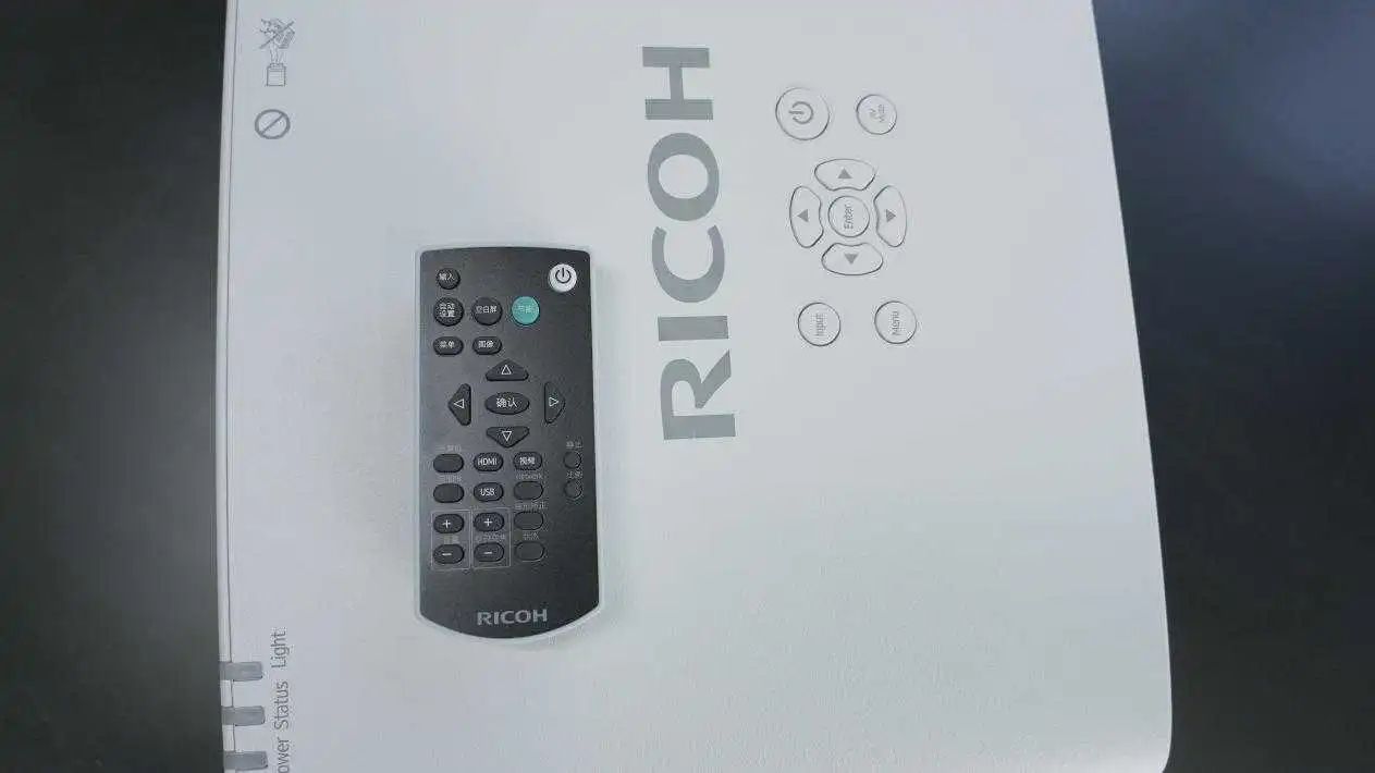 理光PJ RU220的操作面板位于機(jī)身上部,用戶可以更加直觀的看到并操控。當(dāng)然,如果用戶將其吊頂安裝的話可以搭配遙控器使用。