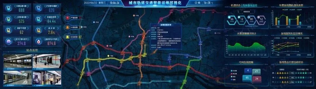 威創(chuàng)作為專業(yè)的可視化服務(wù)提供商,多年來一直致力于為城市軌道交通用戶提供一體化協(xié)同化的可視化服務(wù),助力城市軌道交通安全運(yùn)營。近兩年,威創(chuàng)充分發(fā)揮大屏可視化監(jiān)測預(yù)警、可視化運(yùn)維模型分析、大數(shù)據(jù)可視化融合等技術(shù)優(yōu)勢,逐步融入到城市軌道交通企業(yè)運(yùn)維體系中,并形成了一套完整的城市軌道交通智能運(yùn)維可視化解決方案。