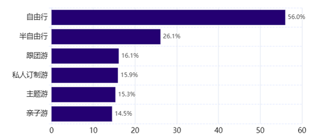 在出游方式上,56%的Z世代都選擇了自由行,遠(yuǎn)高于跟團(tuán)游或各種主題游,他們自己完成交通、酒店和門票的預(yù)定,想去哪兒去哪兒,偏愛自由的特征十分明顯。