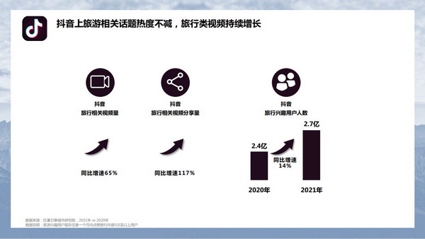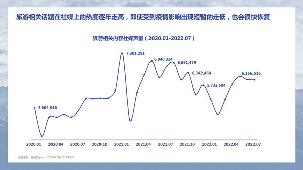 在抖音發(fā)布的《2022中國數(shù)字旅游地圖研究報告》中顯示,旅游相關(guān)話題在社交媒體上的熱度逐年升高。