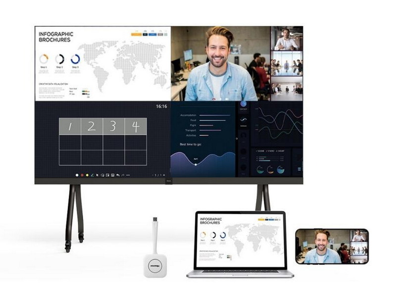 在交互體驗上,海信LED一體機新品支持NFC投屏、軟件投屏、傳屏寶投屏等多種投屏方式,打破外設限制。除此之外還新增遙控器語音控制,只要通過語音輕聲“呼喚”,即可打開聚連會議、無線傳屏等APP,讓辦公更加便捷。