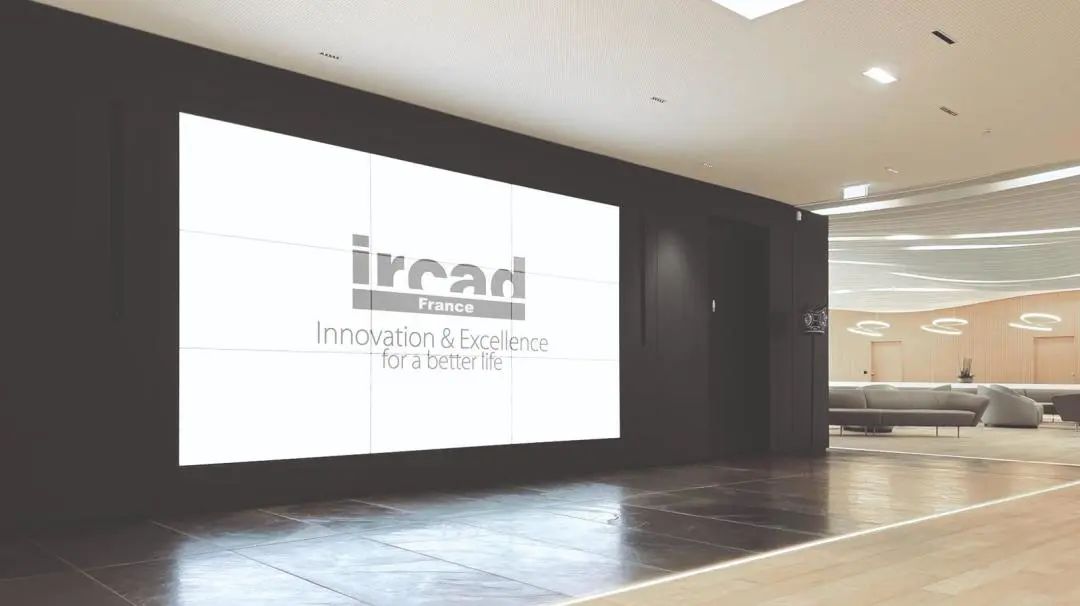 IRCAD 3的迎賓禮堂安裝了3×3巴可優(yōu)利視拼接顯示系統(tǒng),以精美艷麗的高品質畫面,呈現(xiàn)機構介紹與技術視頻,并能在重要會議與研討時進行同步直播。