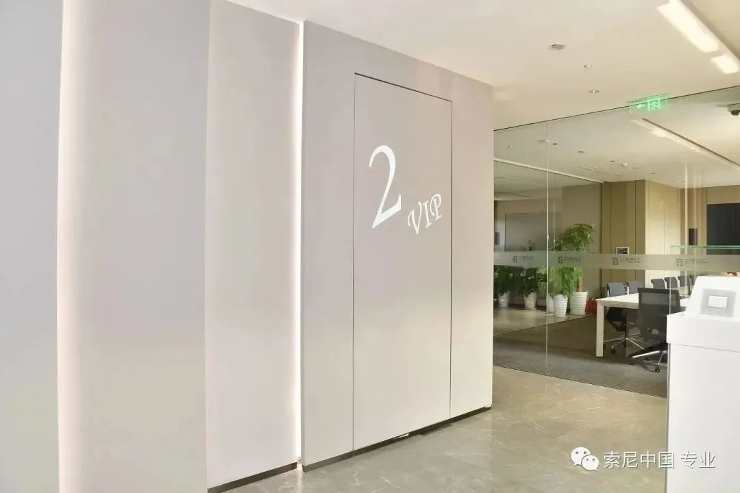 接待大廳,訪客的洽談區(qū),右側(cè)通往展廳
