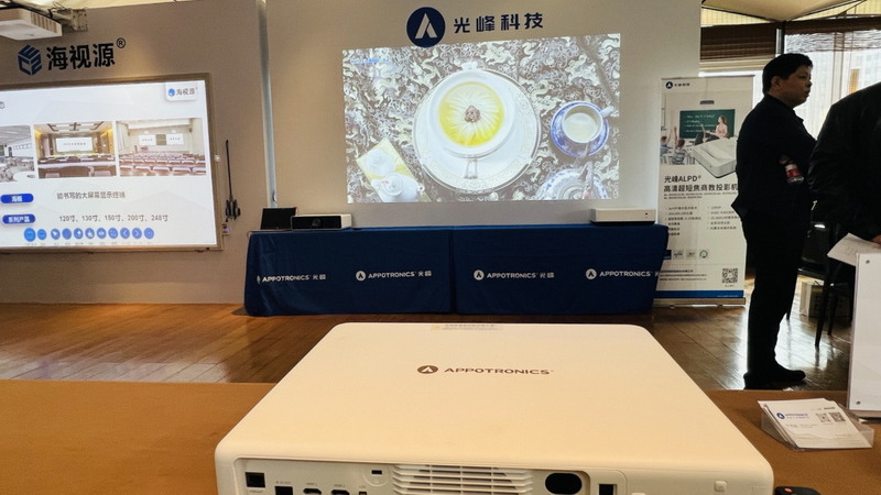 在常規(guī)教學(xué)空間中,投影顯示亦不再只是教學(xué)工具的疊加。根據(jù)不同課室的實(shí)際要求,合理組合搭配,電動投影、智能化控制端口、錄播系統(tǒng)、智能白板等,建設(shè)高校多媒體教室、錄播教室以及智慧教室等。本次光峰展示了4K、高亮的激光長焦投影產(chǎn)品,以及高清高亮超短焦投影產(chǎn)品搭配海視源互動畫框幕,F(xiàn)場環(huán)境明亮也不妨礙光峰激光教育投影機(jī)展現(xiàn)他原本的光彩。