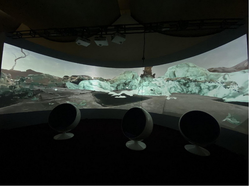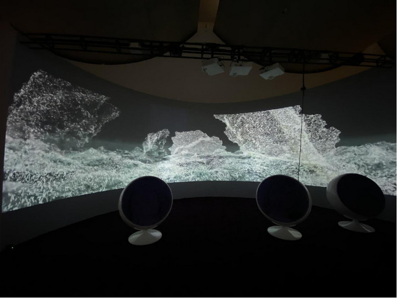 在聚焦微觀生命塑造及轉(zhuǎn)換過(guò)程的作品《臨界地帶》中,6臺(tái)NEC李白短焦系列液晶激光投影機(jī)打造的兩幅巨幅弧幕,帶領(lǐng)觀眾進(jìn)入植物、動(dòng)物以及細(xì)菌的生命和技術(shù)的蛻變中。在這一“臨界地帶”中,感受世間萬(wàn)物生命能量的碰撞和融合。