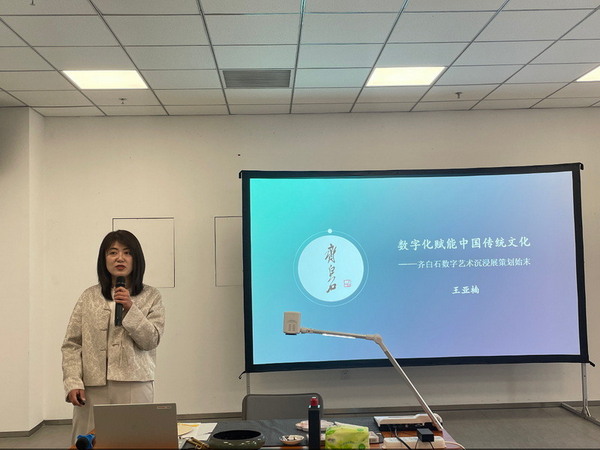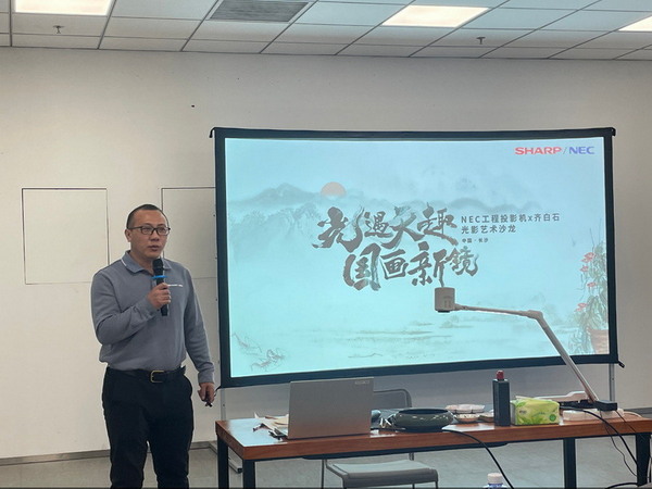 此次沙龍活動特別邀請到“客中月光照家山—齊白石精品展”的策展人——北京畫院副研究員、齊白石藝術(shù)國際研究中心秘書長王亞楠老師。作為本次展覽的策展人,王老師向嘉賓講述了此次策展的意義與價值,從齊白石藝術(shù)中的中國哲思為出發(fā)點,透過140余件齊白石繪畫、書法、篆刻等原作精品展現(xiàn)湖湘精神文化,將藝術(shù)與科技完美融合,開辟了新穎的沉浸式光影藝術(shù)展。王老師還表示,NEC投影團隊非常專業(yè)、NEC產(chǎn)品效果也令人滿意,雙方共同推動了“齊白石效應(yīng)”,實現(xiàn)了有別傳統(tǒng)的展覽,讓動起來、活起來的藝術(shù)作品更深入人心。