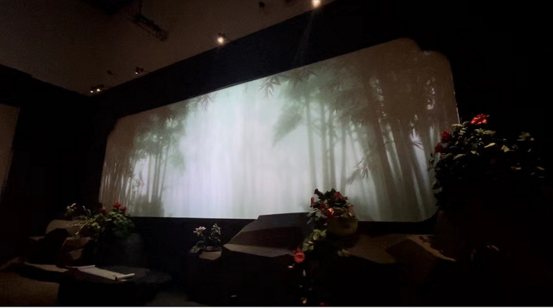 《白石花園》展區(qū),以齊白石大師的花木畫作為核心,極光系列投影將山谷間竹林還原地惟妙惟肖,林間靜謐之美躍然眼前,叫人為之心馳神往。