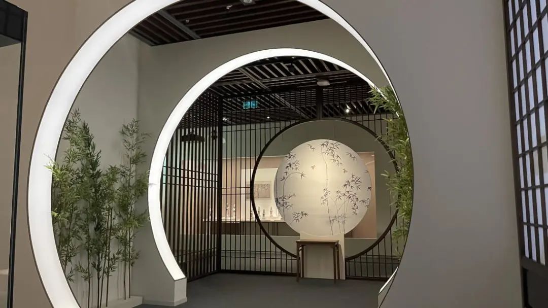 展覽在創(chuàng)意上本著內(nèi)容與形式相輔相成的原則,體現(xiàn)宋式美學(xué)、尚意蘇風(fēng)和文人情趣,并以蘇軾一生的人文生活為背景,提取宋代古典建筑、家具陳設(shè)等元素,運用屏風(fēng)、紗幔 、格子門、月洞門等分隔方式,利用點、線、面的構(gòu)成,營造出虛實相間、清雋風(fēng)雅、氣韻靈動的空間效果,以點帶面?zhèn)鬟_內(nèi)容。展線設(shè)計充分結(jié)合展廳內(nèi)部空間形態(tài),緊扣展覽主題,根據(jù)展覽內(nèi)容進行流線的合理規(guī)劃,通過燈帶、裝置藝術(shù)、場景、多媒體等表現(xiàn)手法,進行重點展項及重點文物的引導(dǎo),實現(xiàn)移步換景、通達前后的觀展體驗。