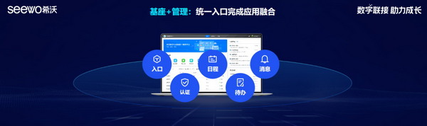 希沃魔方提出的“基座+應(yīng)用”理念,意在通過(guò)基座強(qiáng)大的開(kāi)放融合能力集成校內(nèi)應(yīng)用工具,構(gòu)建可持續(xù)發(fā)展的應(yīng)用中心,實(shí)現(xiàn)工具互聯(lián),助力學(xué)校在統(tǒng)一平臺(tái)實(shí)現(xiàn)校園事務(wù)一站式管理,以解決入口分散問(wèn)題。