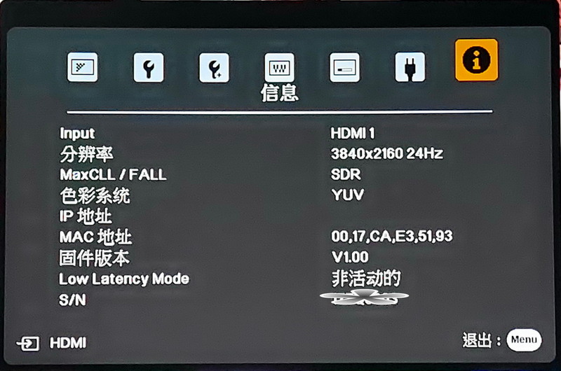 HDR校色后,N59實(shí)測(cè)亮度值是42f,與SDR模式一樣,不開(kāi)Dynamic Eco時(shí),其對(duì)比度只有446,開(kāi)啟了Dynamic Eco模式后,對(duì)比度達(dá)到1833,可見(jiàn)0.47芯片的投影機(jī)在黑位表現(xiàn)和對(duì)比度上先天存在不足,不過(guò)還好N59可以借助Dynamic Eco模式來(lái)改善這個(gè)缺陷。