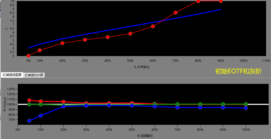 6、出廠默認(rèn)的伽馬、EOTF和灰階曲線參數(shù)表現(xiàn)不錯(cuò),稍微調(diào)整下即可達(dá)標(biāo)。