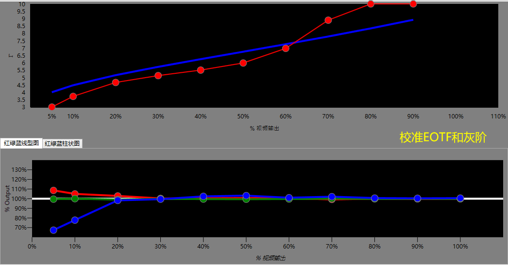 和SDR一樣,出廠預(yù)設(shè)的EOTF和灰階曲線依舊平滑,稍微調(diào)整下即可獲得滿意的曲線數(shù)據(jù)。