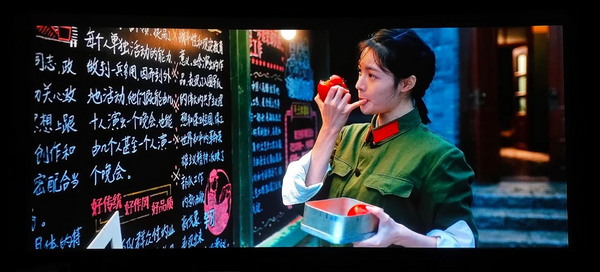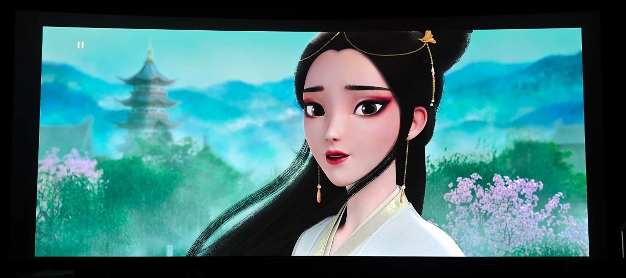 由于N59的投射比無(wú)法投滿我的220寸幕布,根據(jù)現(xiàn)場(chǎng)投射出的畫(huà)面尺寸來(lái)看只有190寸左右,以下屏攝均基于190寸幕布的實(shí)拍(手機(jī)拍攝)。