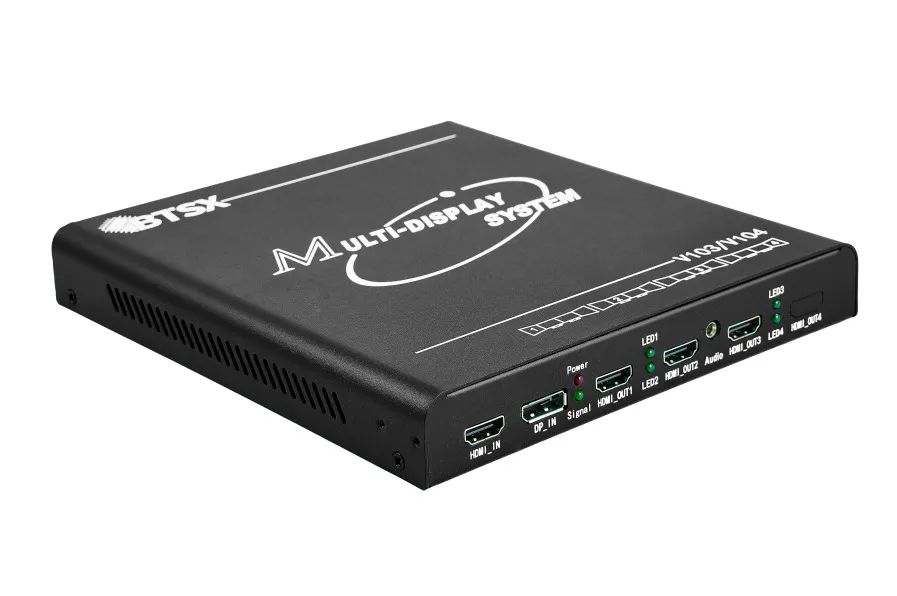 矩陣/分配器主要輸出復(fù)制信號(hào),通過拼接板卡自帶的拼接功能實(shí)現(xiàn)畫面拼接。通常情況下矩陣只能負(fù)責(zé)信號(hào)的切換,不做任何的處理。對(duì)前后端要求較低,但是畫質(zhì)有限,非常規(guī)情況下會(huì)拉伸變形。