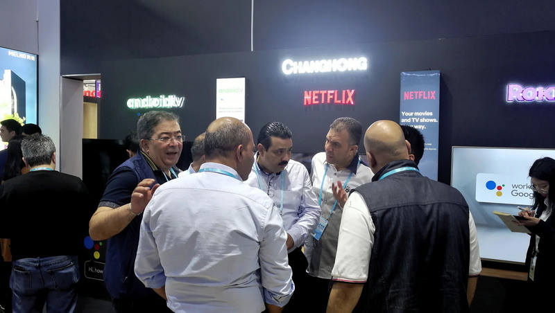 而在內(nèi)容生態(tài)方面,長虹B8U作為行業(yè)首批獲得Android TV™授權(quán)的激光影院,讓海外用戶可以直接通過流媒體坐擁40萬+電影、電視節(jié)目在線影音庫,可以非常便捷地享受大屏觀影的樂趣。這也是長虹B8U在展會現(xiàn)場最亮眼的優(yōu)勢,吸引眾多參觀者咨詢了解。