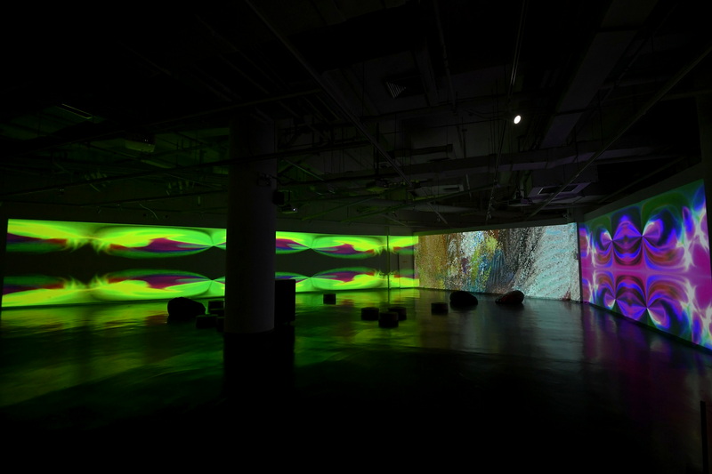 展項(xiàng)使用5臺7000流明亮度的Vivitek(麗訊) DU4871Z激光投影機(jī),通過三臺投影機(jī)融合,兩臺拼接的方式以專業(yè)的工程使用安裝設(shè)計(jì)規(guī)格,穩(wěn)定的品質(zhì)、超高的亮度、真實(shí)的色彩還原度完美呈現(xiàn)藝術(shù)家們的創(chuàng)作。藝術(shù)與創(chuàng)想、數(shù)字藝術(shù)與自然元素,相互分離又相互交融,虛實(shí)結(jié)合又變幻莫測。