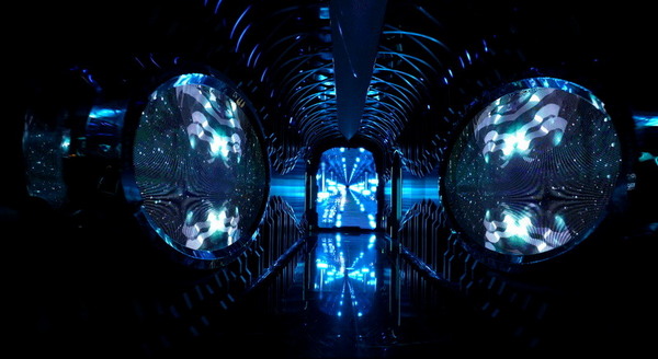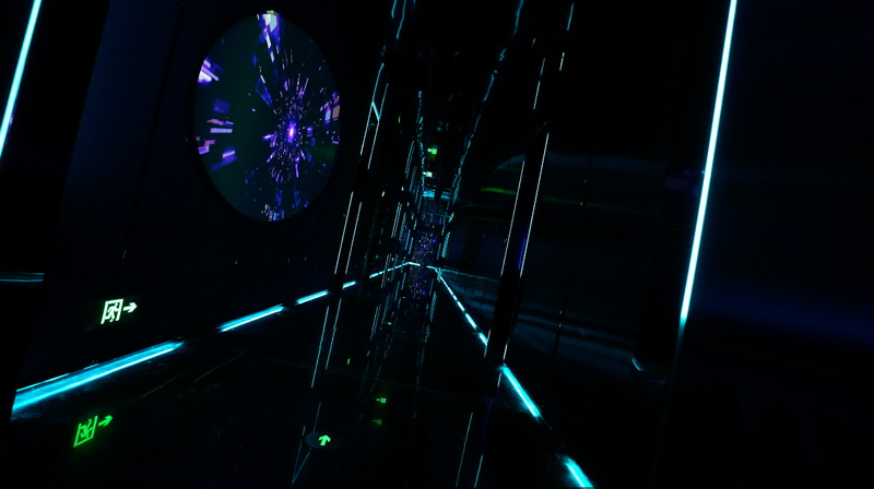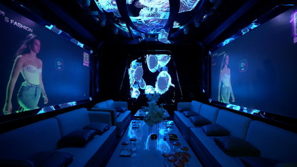 步入錦鳳凰,瞬間登上平行世界的賽博朋克飛船。走廊光感線條仿若飛船的骨架,橢圓投影畫面如同飛船的舷窗,身臨其境游走在未來空間。行至走廊盡頭,超大豎屏投影畫面將潮流元素與炫目大片相融合,營造視覺感官上時空無界的未來幻境。