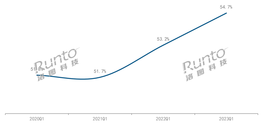 根據(jù)洛圖科技(RUNTO)數(shù)據(jù),2023年第一季度,前四名品牌的市場份額總量CR4為54.7%,集中度有所上升。