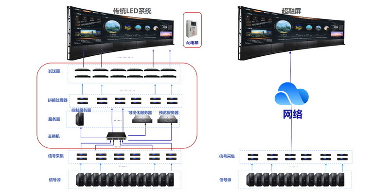 傳統(tǒng)LED系統(tǒng)的可靠性主要依賴于提高各個(gè)獨(dú)立設(shè)備的兼容性。由于擁有“顯控用”全系列產(chǎn)品的廠家極少,各廠家產(chǎn)品之間存在技術(shù)壁壘,產(chǎn)品的性能、可靠性和穩(wěn)定性等均存在差異,這樣形成的復(fù)雜系統(tǒng)“組裝機(jī)”,會(huì)導(dǎo)致整個(gè)系統(tǒng)發(fā)生故障機(jī)率增加。