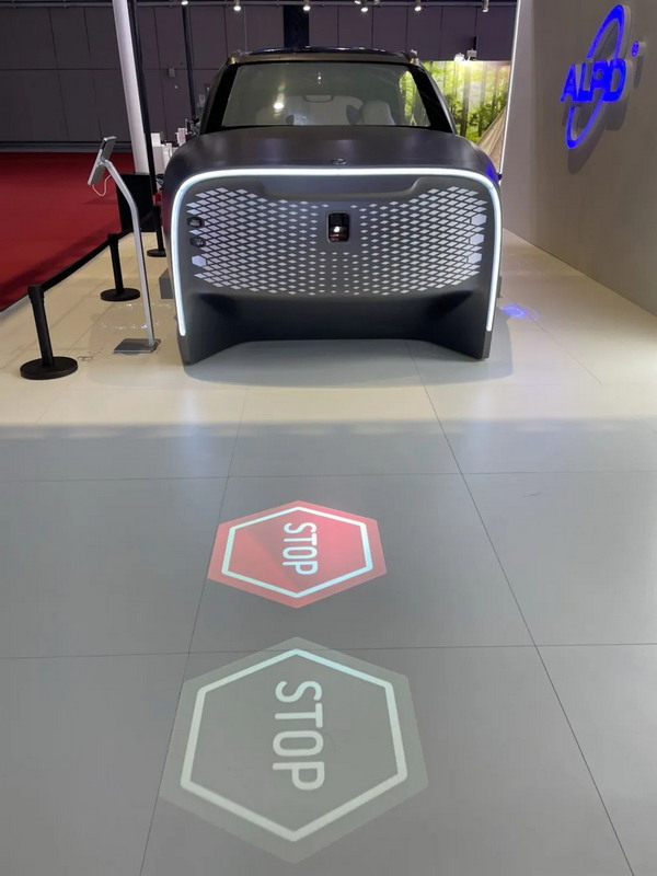 其次,可以提高安全性。舉例而言,一般車輛在高速公路上出現(xiàn)故障拋錨,常規(guī)做法是駕駛員下車在車后150米處放置警示標(biāo),但實際在高速道路上下車、走動、放置的動作就存在極大的安全隱患。如果使用一體化激光大燈,可以一鍵直接在相應(yīng)的位置投射出警示標(biāo)志,提醒遠(yuǎn)處來車,尤其在能見度比較低或者夜間行車,可以避免人走動所面臨的危險。