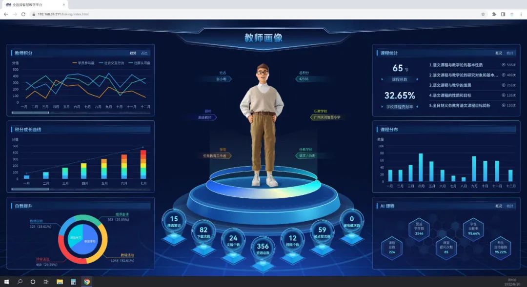 全連接智慧教學(xué)平臺(tái)圍繞教師網(wǎng)絡(luò)教研、課程競(jìng)賽、教學(xué)資源等海量記錄,圍繞不同維度模型,形成可視化的教師數(shù)字化畫像,以數(shù)據(jù)分析替代模糊經(jīng)驗(yàn),輔助教師差異化、交互性教學(xué)和個(gè)性化學(xué)習(xí)。