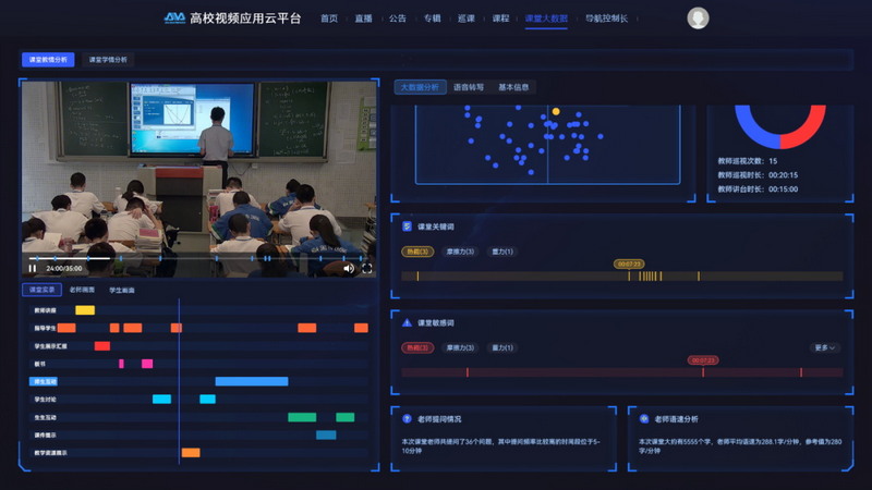通過(guò)錄播系統(tǒng)、智慧紙筆、全連接智慧教學(xué)平臺(tái)等多種教學(xué)場(chǎng)景,形成全場(chǎng)景、伴隨式的數(shù)據(jù)采集和處理,動(dòng)態(tài)呈現(xiàn)區(qū)域課堂應(yīng)用、AI大數(shù)據(jù)分析、優(yōu)質(zhì)資源建設(shè)數(shù)據(jù)等情況,服務(wù)教學(xué)管理者科學(xué)評(píng)教、理性決策,實(shí)現(xiàn)數(shù)據(jù)賦能教育。
