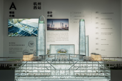 杭州近期重大工程模型裝置,以杭州西站為例。通過模型可以看到,杭州西站主體結(jié)構(gòu)分為地上六層、局部八層、地下二層,每一層都有其相應(yīng)功能。