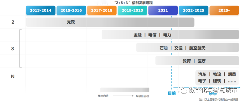 自2013年開始,黨政從公文系統(tǒng)開始替換計劃,預(yù)計黨政到2023年左右完成基本公文系統(tǒng)的信創(chuàng)改造,后續(xù)還要電子政務(wù)系統(tǒng)的國產(chǎn)化替代,市場規(guī)模更大。八大重點行業(yè)中,金融行業(yè)信創(chuàng)首當(dāng)其沖,推進(jìn)速度最快,電信緊隨其后,之后是能源、交通、航空航天,教育、醫(yī)療也在逐步進(jìn)行政策推進(jìn)和試點。最后,N個行業(yè)的信創(chuàng)預(yù)計2023年左右開始啟動。