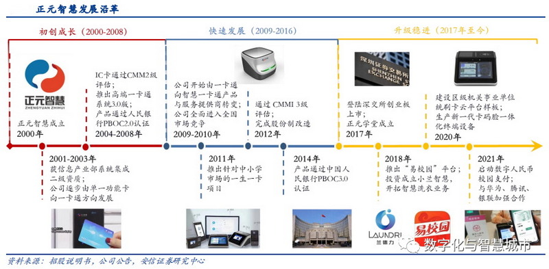 正元智慧成立于2000年,2017年登陸深交所創(chuàng)業(yè)板上市,深耕教育信息化領(lǐng)域二十余年。上市之前,公司產(chǎn)品 以校園一卡通為主;上市之后,公司轉(zhuǎn)型升級,在原有一卡通積淀的基礎(chǔ)上,運用新一代 AIoT 數(shù)字技術(shù),打造“融合智能服務(wù)平臺+智能硬件+應(yīng)用系統(tǒng)+云服務(wù)”的全場景解決方案。隨著近兩年數(shù)字人民幣在全國持續(xù)推進(jìn),公司攜手央行數(shù)研所,布局并落地了多個校園數(shù)字人民幣項目,有望藉此打開新的增長極。