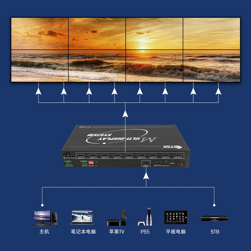 BIT-VWC-XL109拼接處理器支持一路HDMI2.0輸入,九路HDMI1.3輸出,一路HDMI2.0環(huán)出。