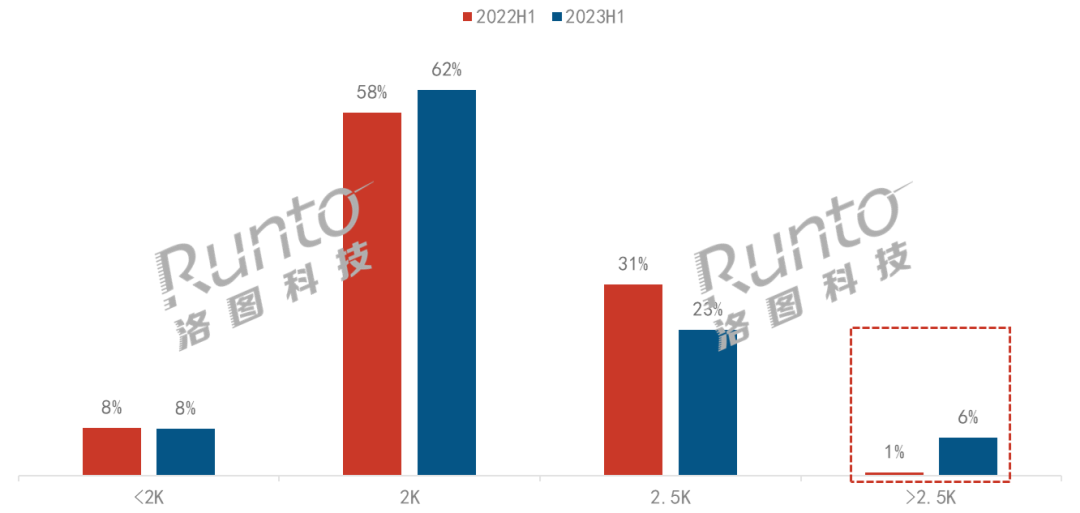 2023H1 中國智能平板線上市場分辨率結(jié)構(gòu)及變化