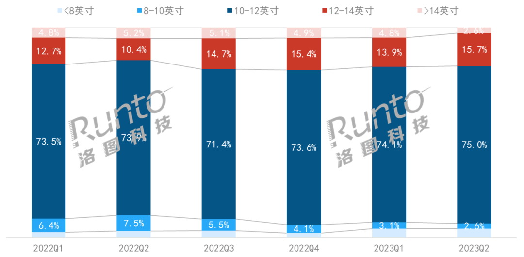 值得關(guān)注的是,14英寸以上的超大尺寸產(chǎn)品份額在萎縮,8-10英寸區(qū)間的產(chǎn)品市場也逐漸被部分企業(yè)放棄。