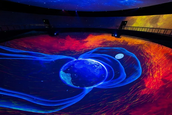 置身于球幕穹頂下,跟隨電影的節(jié)奏讓視覺穿梭太空之間,從藍(lán)色家園出發(fā)開始,拜訪未知星球,沖出銀河系,奔向宇宙邊緣。