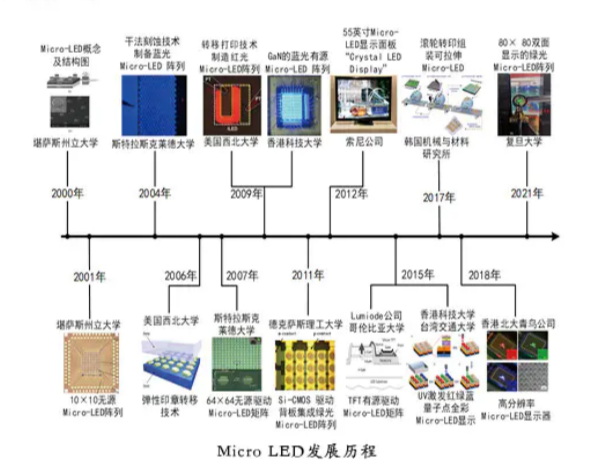 Mini/Micro LED是一種新興的微顯示技術(shù),具有高亮度、高對(duì)比度、高色彩飽和度、低功耗等優(yōu)點(diǎn),被認(rèn)為是未來顯示技術(shù)的發(fā)展方向之一。其中,Micro LED技術(shù)是在2000年由來自于德州理工大學(xué)的江紅星和林景瑜兩位教授領(lǐng)導(dǎo)的一個(gè)研究小組創(chuàng)造。MicroLED就是傳統(tǒng)LED通過更小的方式排放在陣列中,這種技術(shù)可以降低對(duì)極化和封裝層的要求,能讓顯示面板更薄。因此MicroLED的組件都很小,寬度不到50μm,比人類的頭發(fā)還細(xì)。