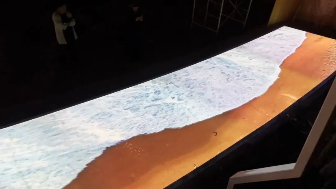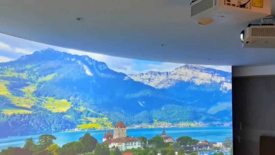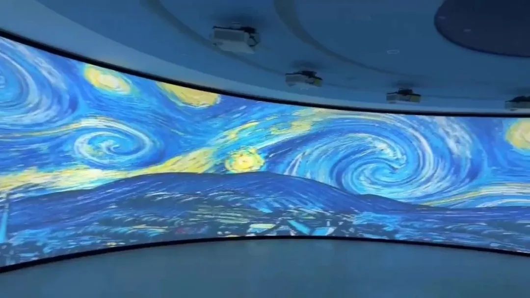 哈爾濱旅游學(xué)院展廳——9臺Venus系列高亮短焦投影機通過拼接融合,打造270°沉浸式展廳,配合畫面內(nèi)容,讓觀眾近距離感受畫面帶來的沖擊力。