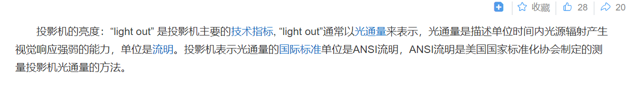 “流明”是光通量的國際單位,也是投影儀的亮度單位。在同一套標準下,通常來說投影儀流明數(shù)值越高,抗光性就越強。