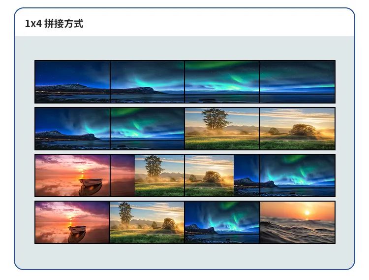 支持多種拼接模式,包括1*1、2*2、1*3、1*4等不同拼接模式,讓你根據(jù)實(shí)際需求進(jìn)行靈活的畫面布局。無(wú)論是大屏幕拼接還是多畫面展示,它都能輕松勝任。