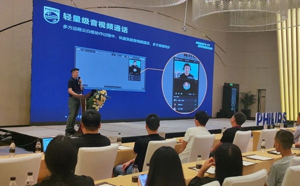 飛利浦商用顯示產(chǎn)品經(jīng)理陳嘉凌詳細(xì)分享了飛利浦商顯的產(chǎn)品策略,并向與會嘉賓全方位展示飛利浦第七代智能會議平板的強(qiáng)大性能。他通過闡述飛利浦智能會議平板在教育、醫(yī)療、金融、政企等應(yīng)用場景下的解決方案,讓與會嘉賓對P7系列的創(chuàng)新功能擁有清晰、全面、準(zhǔn)確認(rèn)知。