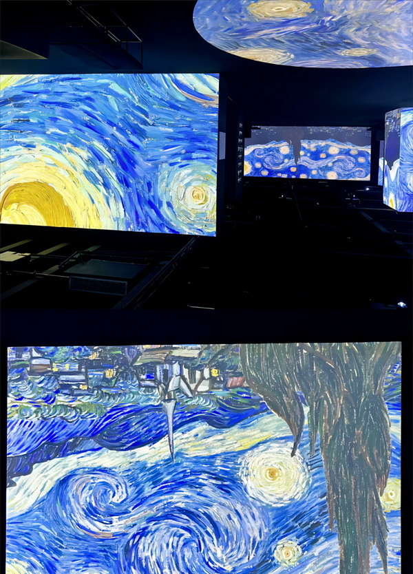 在【梵高再現(xiàn)】展覽中,這項(xiàng)技術(shù)被應(yīng)用于梵高作品上,將絢麗的色彩和線條呈現(xiàn)給觀眾。無(wú)論是梵高的夜晚星空、陽(yáng)光斑斕的麥田,還是多變的人物形象,都能以一種前所未有的方式展示。