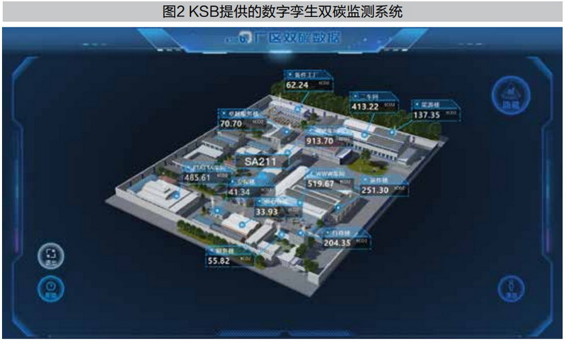 KSB是德國(guó)一家做泵的隱形冠軍企業(yè),給自來(lái)水廠、核電核能提供泵,2022年銷售額高達(dá)十二億歐元。如今,碳排放控制成為全球的焦點(diǎn),每一家工廠都需要監(jiān)測(cè)碳排放。KSB借助數(shù)字孿生技術(shù)打造雙碳監(jiān)測(cè)系統(tǒng),通過(guò)一張圖去監(jiān)測(cè)管理,實(shí)時(shí)獲取碳排放數(shù)據(jù),實(shí)現(xiàn)在線運(yùn)維監(jiān)控。