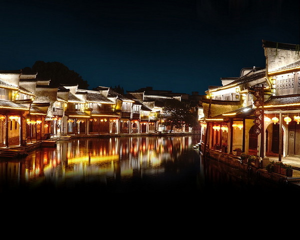 以水為幕唯美浪漫,展現(xiàn)南潯古鎮(zhèn)的文化風(fēng)貌、夜色下的江南氛圍,為這個(gè)傳統(tǒng)的建筑體注入了新的活力。